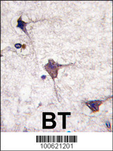 Formalin-fixed and paraffin-embedded human brain tissue reacted with hPCPTP1-Y249, which was peroxidase-conjugated to the secondary antibody, followed by DAB staining. This data demonstrates the use of this antibody for immunohistochemistry; clinical relevance has not been evaluated. |
