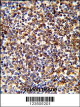 Formalin-fixed and paraffin-embedded human spleen tissue reacted with COTL1 Antibody (C-term), which was peroxidase-conjugated to the secondary antibody, followed by DAB staining. This data demonstrates the use of this antibody for immunohistochemistry; clinical relevance has not been evaluated.