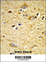 Formalin-fixed and paraffin-embedded human brain tissue reacted with GSTA4 Antibody (N-term), which was peroxidase-conjugated to the secondary antibody, followed by DAB staining. This data demonstrates the use of this antibody for immunohistochemistry; clinical relevance has not been evaluated.