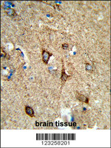 Formalin-fixed and paraffin-embedded human brain tissue reacted with COX5A Antibody (Center), which was peroxidase-conjugated to the secondary antibody, followed by DAB staining. This data demonstrates the use of this antibody for immunohistochemistry; clinical relevance has not been evaluated.