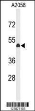 Western blot analysis of EYA4 Antibody (C-term) (Cat. APR11886G) in A2058 cell line lysates (35ug/lane). EYA4 (arrow) was detected using the purified Pab.