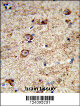 Formalin-fixed and paraffin-embedded human brain tissue reacted with LRRC4 Antibody (C-term), which was peroxidase-conjugated to the secondary antibody, followed by DAB staining. This data demonstrates the use of this antibody for immunohistochemistry; clinical relevance has not been evaluated. |