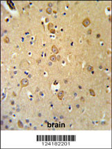 LRRTM1 Antibody (Center) (Cat. APR12474G) IHC analysis in formalin fixed and paraffin embedded brain tissue followed by peroxidase conjugation of the secondary antibody and DAB staining. This data demonstrates the use of the LRRTM1 Antibody (Center) for immunohistochemistry. Clinical relevance has not been evaluated. |