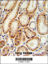 GALNT5 Antibody (N-term) (Cat. APR16072G) IHC analysis in formalin fixed and paraffin embedded human normal lung tissue followed by peroxidase conjugation of the secondary antibody and DAB staining. This data demonstrates the use of the GALNT5 Antibody (N-term) for immunohistochemistry. Clinical relevance has not been evaluated.