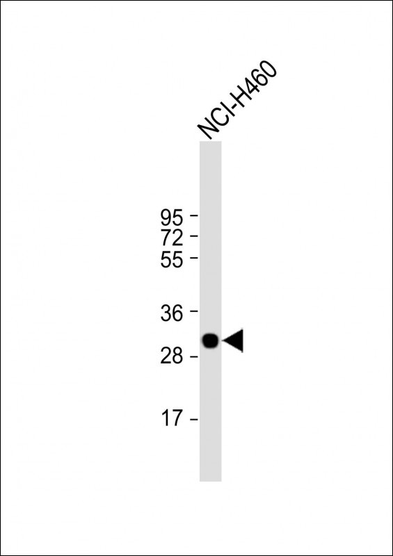 Anti-LGALS3 Antibody (C-term) at 1:2000 dilution + NCI-H460 whole cell lysate Lysates/proteins at 20 μg per lane. Secondary Goat Anti-mouse IgG, (H+L), Peroxidase conjugated at 1/10000 dilution. Predicted band size : 26 kDa Blocking/Dilution buffer: 5% NFDM/TBST.