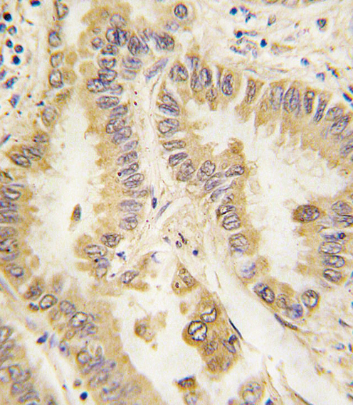 Formalin-fixed and paraffin-embedded human lung carcinoma tissue reacted with SOD2 Monoclonal Antibody (Cat. APR10198G), which was peroxidase-conjugated to the secondary antibody, followed by DAB staining. This data demonstrates the use of this antibody for immunohistochemistry; clinical relevance has not been evaluated.