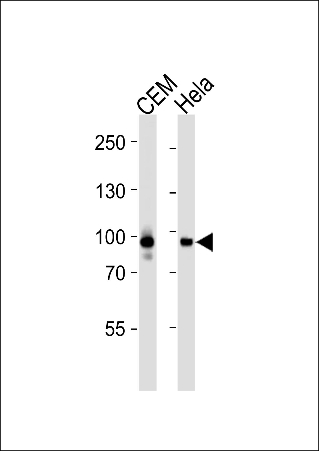 Western blot analysis of lysates from CEM, Hela cell line (from left to right), using Stat3 Antibody( APR11194G). APR11194G was diluted at 1:1000 at each lane. A goat anti-mouse IgG H&L(HRP) at 1:3000 dilution was used as the secondary antibody. Lysates at 35μg per lane. |