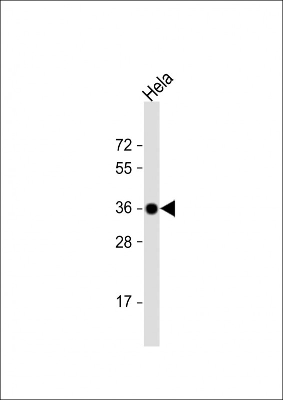 Anti-GAPDH Antibody, HRP Conjugate at 1:40000 dilution + Hela whole cell lysate Lysates/proteins at 20 μg per lane. Predicted band size : 36 kDa Blocking/Dilution buffer: 5% NFDM/TBST. |