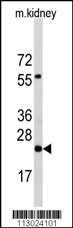 Western blot analysis of anti-PEMT Antibody (N-term) Pab (Cat. APR09036G) in mouse kidney tissue lysates (35ug/lane). PEMT(arrow) was detected using the purified Pab.