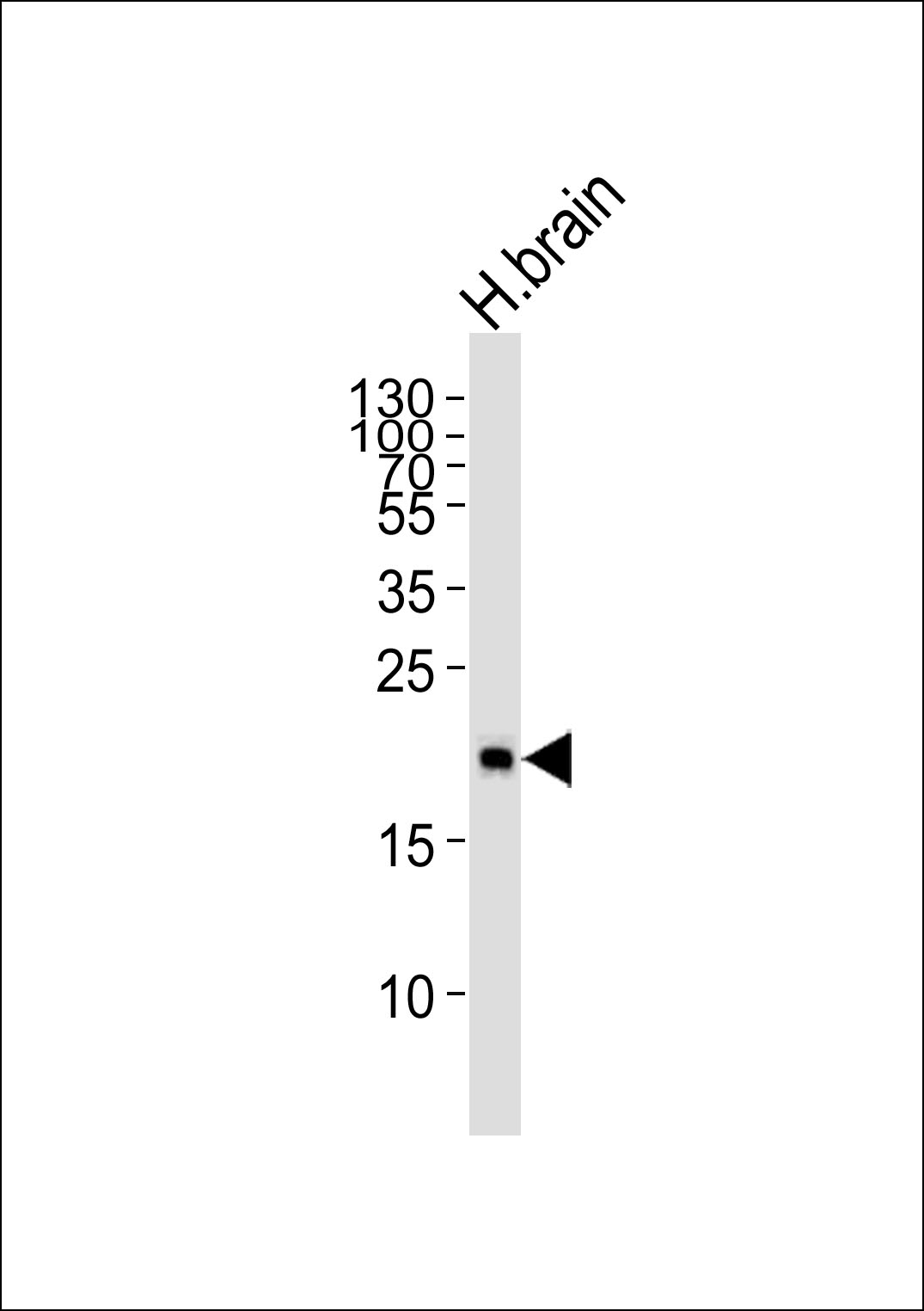 Western blot analysis of lysate from human brain tissue lysate, using Hippocalcin Antibody (R17)( AP1564A). AP1564A was diluted at 1:1000. A goat anti-rabbit IgG H&L(HRP) at 1:5000 dilution was used as the secondary antibody. Lysate at 35ug.