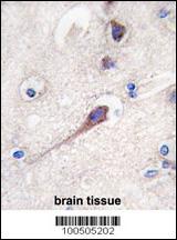 Formalin-fixed and paraffin-embedded human brain tissue reacted with Hippocalcin antibody (N-term), which was peroxidase-conjugated to the secondary antibody, followed by DAB staining. This data demonstrates the use of this antibody for immunohistochemistry; clinical relevance has not been evaluated. |