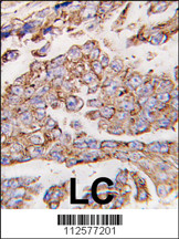 Formalin-fixed and paraffin-embedded human lung carcinoma tissue reacted with *LAMP1 antibody (N-term) (Cat. APR06995G), which was peroxidase-conjugated to the secondary antibody, followed by DAB staining. This data demonstrates the use of this antibody for immunohistochemistry; clinical relevance has not been evaluated. |