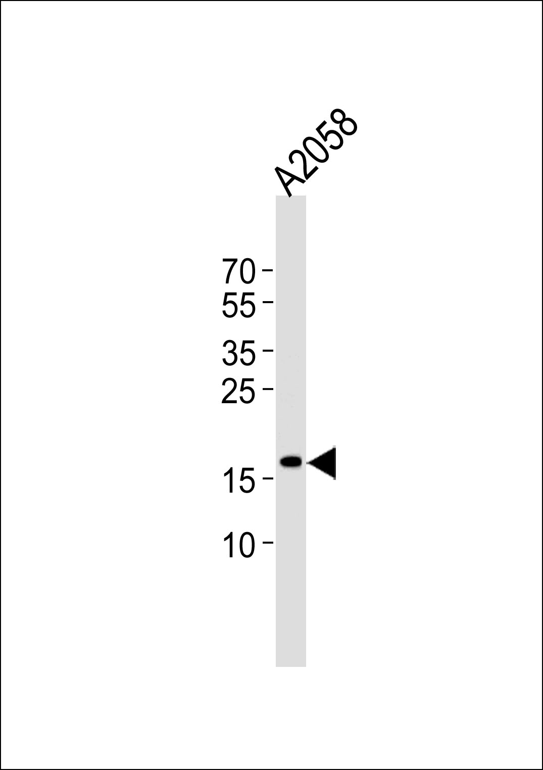 Western blot analysis of lysate from A2058 cell line, using SNX3 Antibody (Center)( AMM07921G). AMM07921G was diluted at 1:1000. A goat anti-rabbit IgG H&L(HRP) at 1:5000 dilution was used as the secondary antibody. Lysate at 35ug. |