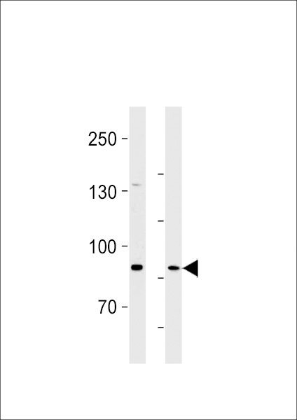 SEMA6B Antibody (C-term) (Cat. APR13255G) western blot analysis in U87-MG cell line and rat brain lysates (35ug/lane).This demonstrates the SEMA6B antibody detected the SEMA6B protein (arrow). |