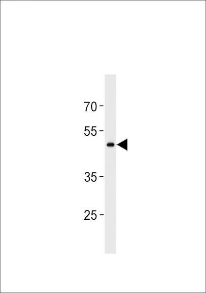 GPR150 Antibody (C-term) (Cat. APR16500G) western blot analysis in K562 cell line lysates (35ug/lane).This demonstrates the GPR150 antibody detected the GPR150 protein (arrow). |