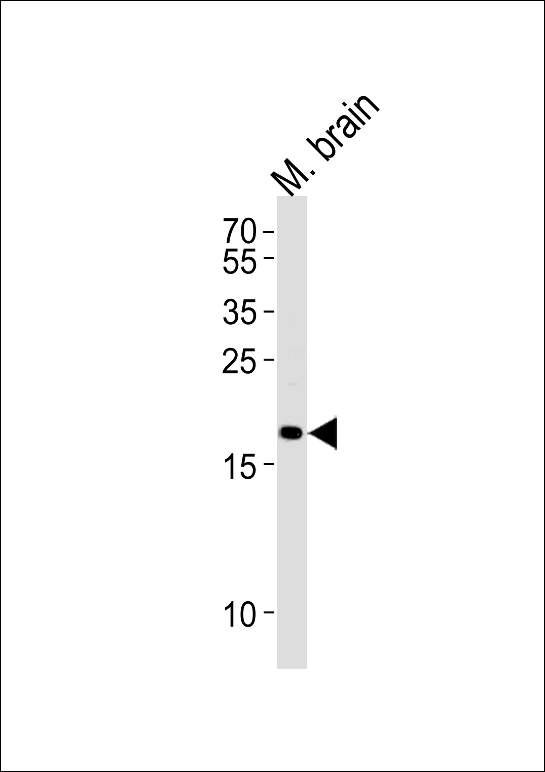 Western blot analysis of lysate from mouse brain tissue, using CPLX2 Antibody (Center)( APR11653G). APR11653G was diluted at 1:1000. A goat anti-rabbit IgG H&L(HRP) at 1:5000 dilution was used as the secondary antibody. Lysate at 35ug. |