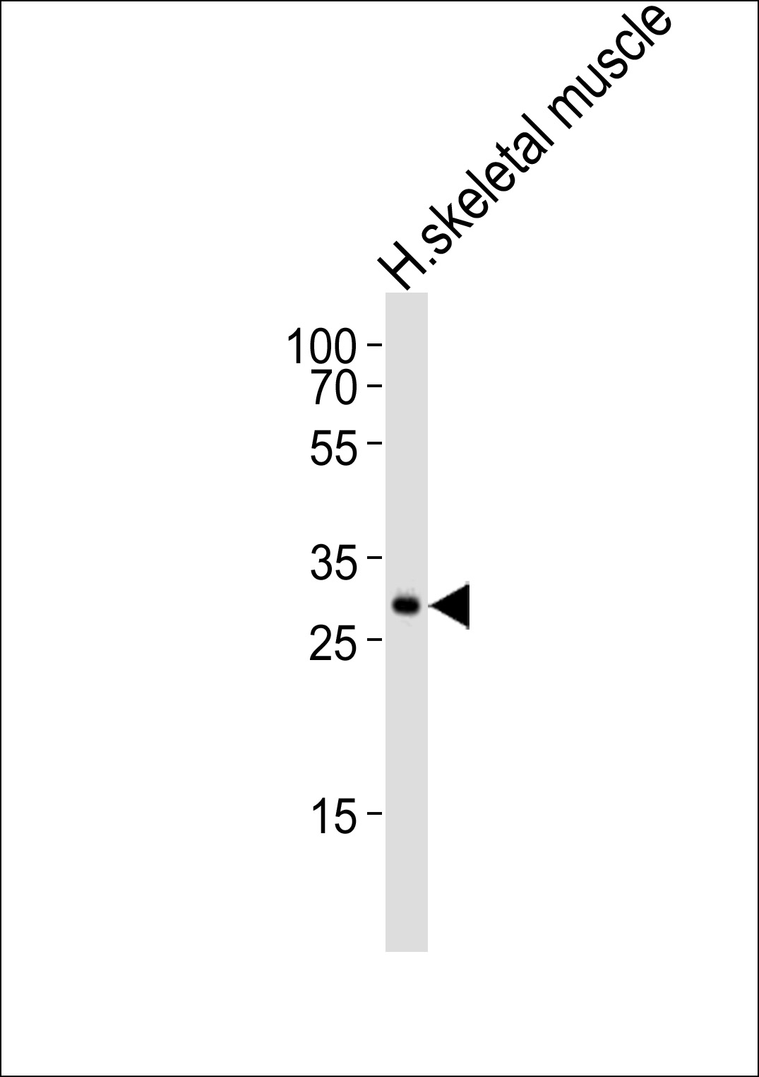 Western blot analysis of lysate from human skeletal muscle tissue lysate, using GBAS Antibody (Center)( APR16088G). APR16088G was diluted at 1:1000. A goat anti-rabbit IgG H&L(HRP) at 1:10000 dilution was used as the secondary antibody. Lysate at 35ug. |