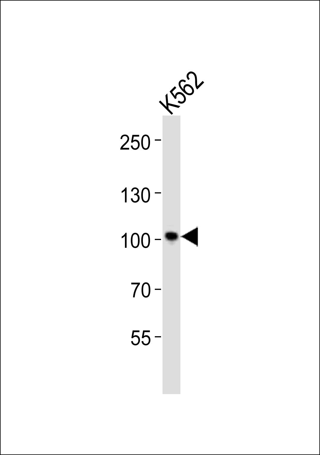 Western blot analysis of lysate from K562 cell line, using STAT5A Antibody (C-term)( APR10277G). APR10277G was diluted at 1:1000. A goat anti-rabbit IgG H&L(HRP) at 1:10000 dilution was used as the secondary antibody. Lysate at 20ug. |