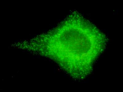 Immunocytochemistry of HeLa cells using anti-COX IV mouse mAb diluted 1:150.