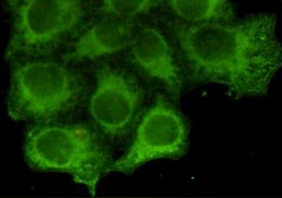 Immunocytochemistry staining of HeLa cells fixed by anhydrous methanol for 2 h at -20℃ and using anti-Keratin 18 mouse mAb (dilution 1:800). |
