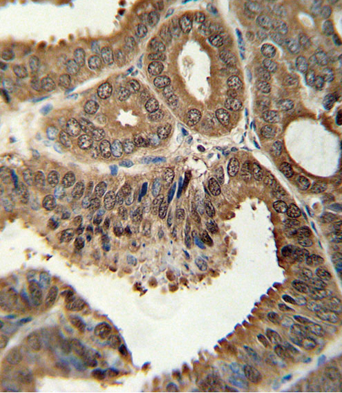 SFN antibody (C-term) (Cat. APR13300G) immunohistochemistry analysis in formalin fixed and paraffin embedded human prostate carcinoma followed by peroxidase conjugation of the secondary antibody and DAB staining. This data demonstrates the use of the SFN antibody (C-term) for immunohistochemistry. Clinical relevance has not been evaluated.