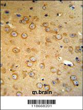 VHL Antibody (C-term) (RB18668) IHC analysis in formalin fixed and paraffin embedded mouse brain tissue followed by peroxidase conjugation of the secondary antibody and DAB staining. This data demonstrates the use of the VHL Antibody (C-term) for immunohistochemistry. Clinical relevance has not been evaluated. |
