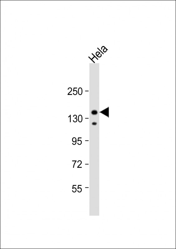 Anti-IRS2 Antibody (C-term) at 1:1000 dilution + Hela whole cell lysate Lysates/proteins at 20 μg per lane. Secondary Goat Anti-Rabbit IgG, (H+L), Peroxidase conjugated at 1/10000 dilution. Predicted band size : 137 kDa Blocking/Dilution buffer: 5% NFDM/TBST.