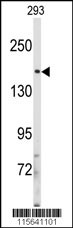 Western blot analysis of anti-IRS2 Antibody (C-term) (Cat. APR08046G) in 293 cell line lysates (35ug/lane). IRS2 (arrow) was detected using the purified Pab. |