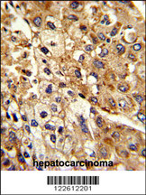 Formalin-fixed and paraffin-embedded human hepatocarcinoma reacted with ATP1B2 Antibody (Center), which was peroxidase-conjugated to the secondary antibody, followed by DAB staining. This data demonstrates the use of this antibody for immunohistochemistry; clinical relevance has not been evaluated.