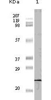 Figure 1: Western blot analysis using 4E-BP1 mouse mAb against truncated 4E-BP1 recombinant protein (1).