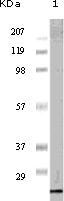Figure 1: Western blot analysis using PR mouse mAb against PR recombinant protein (1).