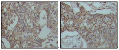 Figure 3: Immunohistochemical analysis of paraffin-embedded human breast carcinoma tissues, showing membrane localization with DAB staining using CD44 mouse mAb. |