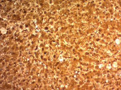 Recognizes a protein of 35-38kDa, which is identified as Arginase 1 (ARG1). Arginase is a manganese metallo-enzyme that catalyzes the hydrolysis of arginine to generate ornithine and urea. Arginase I and II are isoenzymes, which differ in subcellular localization, regulation, and possibly function. Arginase I is a cytosolic enzyme, which is expressed mainly in the liver as part of the urea cycle, whereas arginase II is a mitochondrial protein found in a variety of tissues. Antibody to ARG-1 labels hepatocytes in normal tissues and granulocytes in peripheral blood. ARG-1 is a sensitive and specific marker for identification of hepatocellular carcinoma.