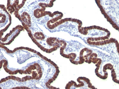 Formalin-fixed, paraffin-embedded human Ovarian Carcinoma stained with Cytokeratin 7 Monoclonal Antibody (KRT7/760)