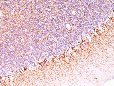 Formalin-fixed, paraffin-embedded human Cerebellum stained with Neurofilament Monoclonal Antibody (SPM563). |