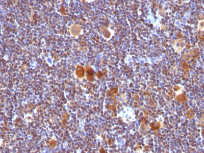 Formalin-fixed, paraffin-embedded human Hodgkin's Lymphoma stained with Bax Monoclonal Antibody (Clone SPM336). |