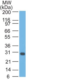 Recognizes a protein of 27kDa, identified as the Bcl-X protein. This MAb shows no cross-reaction with Bcl-2 or Bax protein. Bcl-X has two isoforms, Bcl-XL (long), a 241 amino acid protein which suppresses cell death. And Bcl-XS (short), a 178 amino acid protein lacking a 63 amino acid domain which functions as a dominant inhibitor of Bcl-2. This MAb reacts with both Bcl-XS and Bcl-XL proteins.
