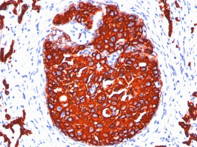 Formalin-fixed, paraffin-embedded human Breast Carcinoma stained with Cytokeratin, pan Monoclonal Antibody cocktail (KRTL/1077 + KRTH/1076).