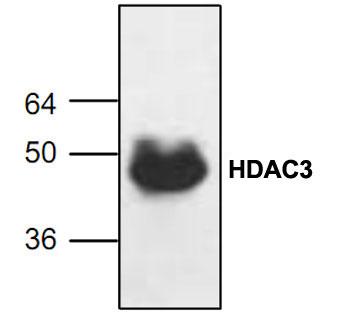 HDAC3 is a member of the class I mammalian histone deacetylase family, which plays an important role in modulating the eukaryotic chromatin structure. Human HDAC3 is composed of 428 amino acid residues. HDAC3 interacts with a growing number of transcriptional factors including SMRT and N-CoR. The interacting complexes bind to specific regions of chromatin and regulate gene transcription in these regions.