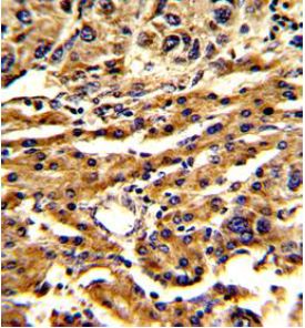 Formalin-fixed and paraffin-embedded human hepatocarcinoma reacted with ABCG1 Antibody (Center), which was peroxidase-conjugated to the secondary antibody, followed by DAB staining. This data demonstrates the use of this antibody for immunohistochemistry; clinical relevance has not been evaluated. |