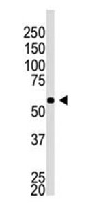 The anti-BACE2C C-term Pab is used in Western blot to detect BACE2C in A549 cell lysate.