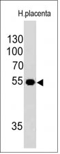 Western Blot of ODC1 in human placental Lysateusing ODC-1 Monoclonal Antibody (ODC1/485). |