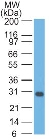 Recognizes a protein of 27kDa, identified as the Bcl-X protein. This MAb shows no cross-reaction with Bcl-2 or Bax protein. Bcl-X has two isoforms, Bcl-XL (long), a 241 amino acid protein which suppresses cell death. And Bcl-XS (short), a 178 amino acid protein lacking a 63 amino acid domain which functions as a dominant inhibitor of Bcl-2. This MAb reacts with both Bcl-XS and Bcl-XL proteins.