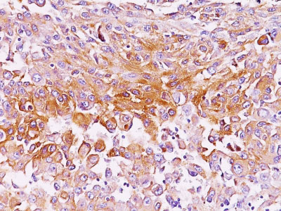 By immunohistochemistry, it specifically recognizes a protein in melanocytes and melanomas. This MAb reacts with junctional and blue nevus cells and variably with fetal and neonatal melanocytes. Intradermal nevi, normal adult melanocytes, and non-melanocytic cells are negative. It does not stain tumor cells of epithelial, lymphoid, glial, or mesenchymal origin.This Mab labels formalin-fixed, paraffin-embedded melanomas and other tumors showing melanocytic differentiation.