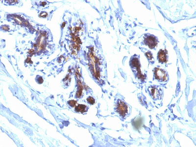 Formalin-fixed, paraffin-embedded human Breast Carcinoma stained with Milk Fat Globule Monoclonal Antibody (EDM45) |