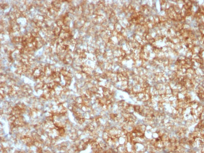Formalin-fixed, paraffin-embedded human Renal Cell Carcinoma stained with CD147 Monoclonal Antibody (BSG/963).