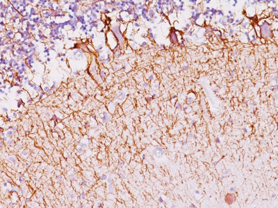 Formalin-fixed, paraffin-embedded human Cerebellum stained with Neurofilament Monoclonal Antibody (SPM145). |