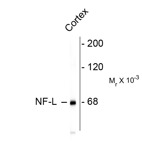 Western blot of rat cortex lysate showing specificimmunolableing of the ~ 68k NF-L protein. |