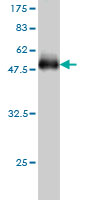 Western Blot analysis of ACOT9 expression in transfected 293T cell line by ACATE2 monoclonal antibody (M01), clone 4E4. Lane 1: ACOT9 transfected lysate(24 KDa). Lane 2: Non-transfected lysate. |