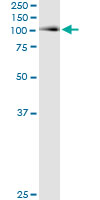 Immunoprecipitation of ACO1 transfected lysate using anti-ACO1 monoclonal antibody and Protein A Magnetic Bead (<a href="products_detail.asp?Catalog_id=U0007">U0007</a>), and immunoblotted with ACO1 MaxPab rabbit polyclonal antibody.